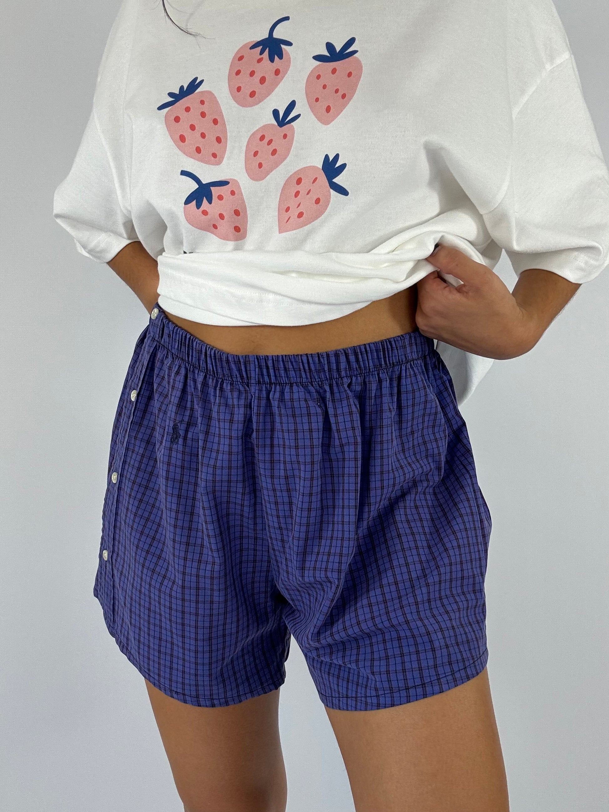 Conception : caleçon femme upcyclé à partir d'une chemise Ralph Lauren de seconde main