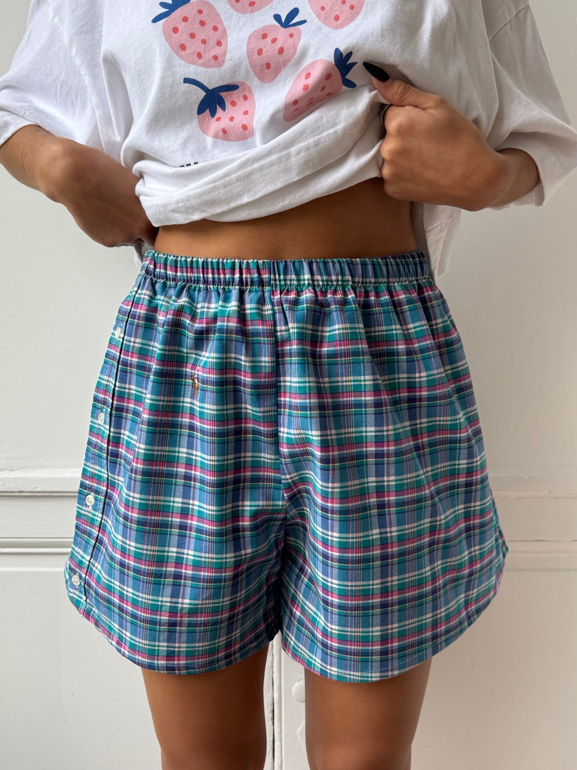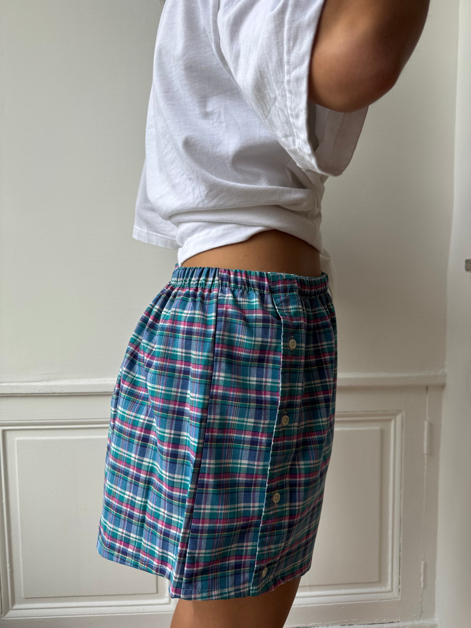 Conception : caleçon femme upcyclé à partir d'une chemise Ralph Lauren de seconde main