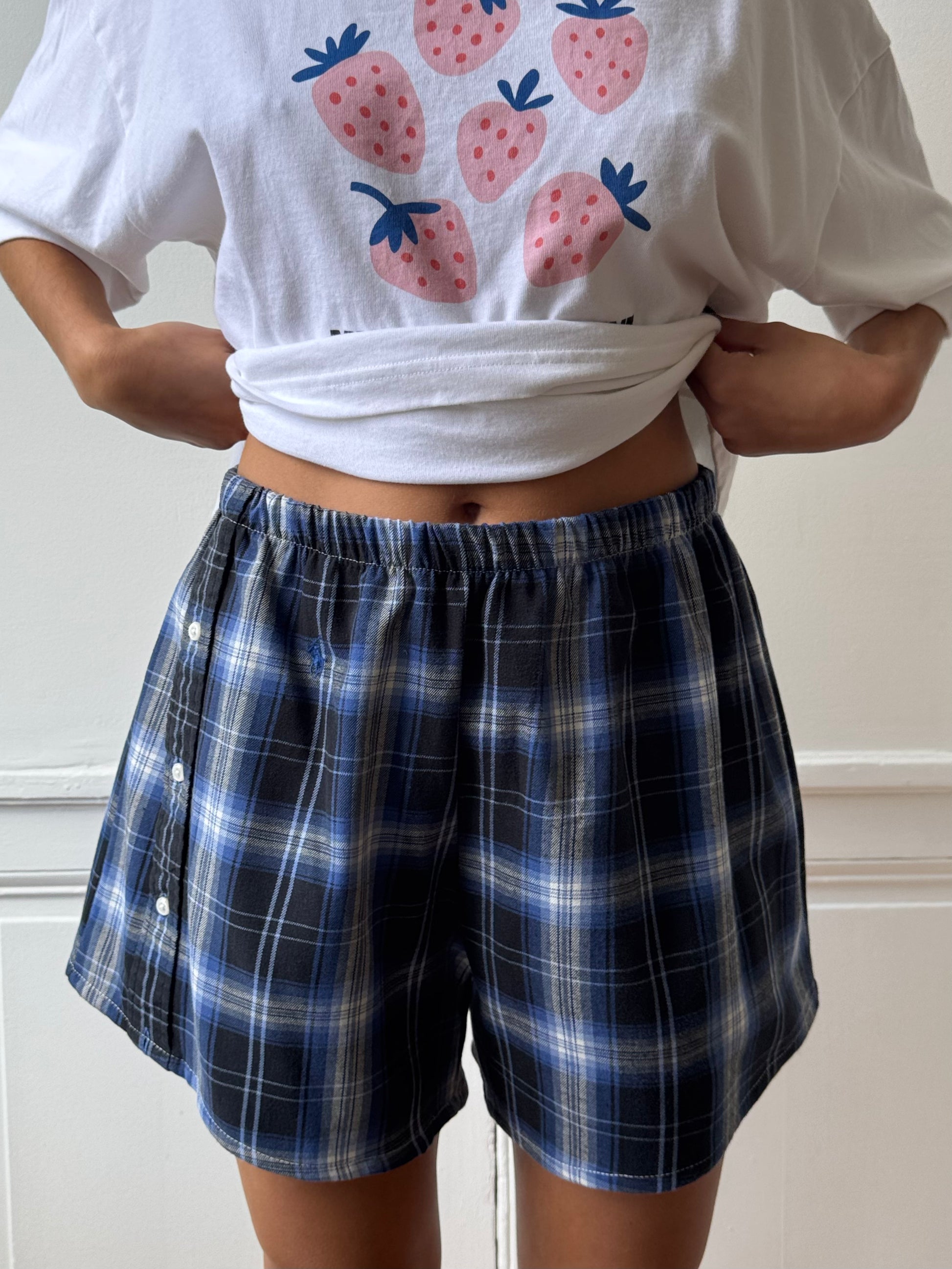 Conception : caleçon femme upcyclé à partir d'une chemise Ralph Lauren de seconde main