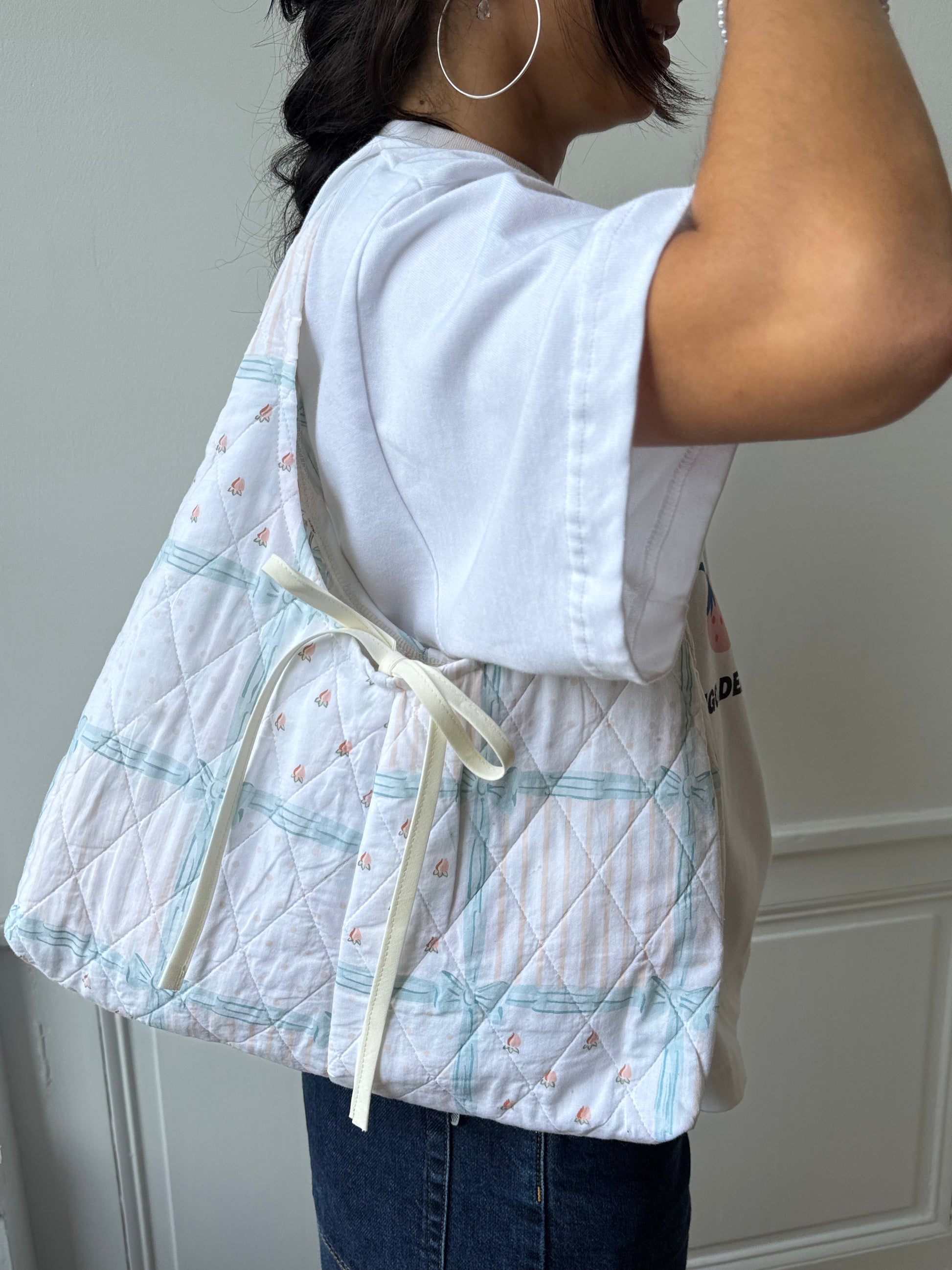 Sac upcyclé matelassé blanc à motifs