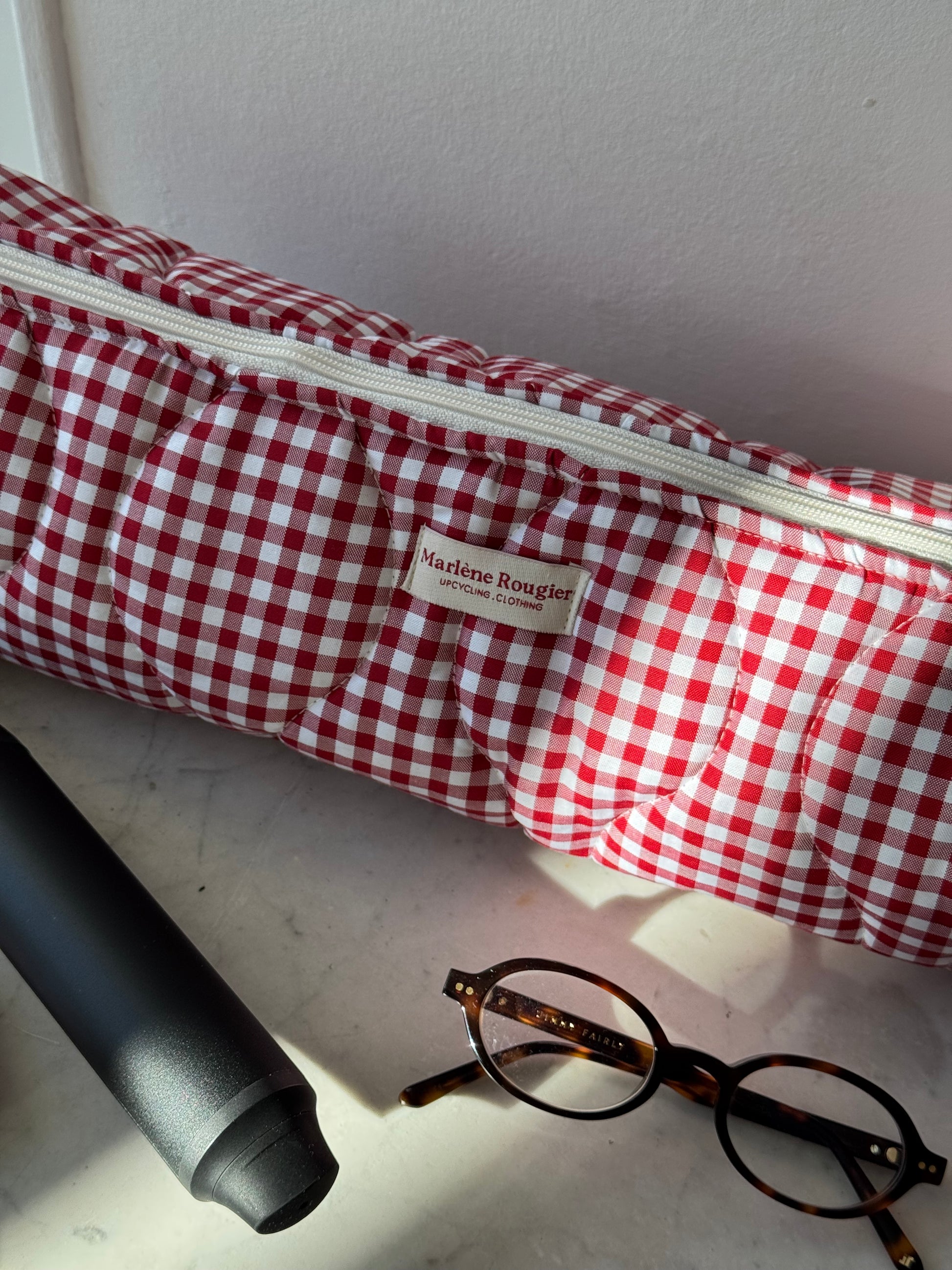 Conception : trousse conçue à partir de tissus de seconde main + fermeture éclair
