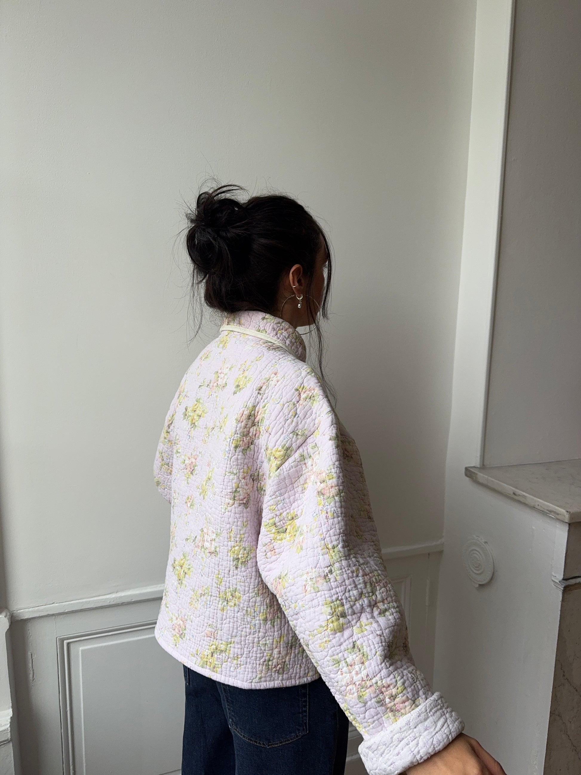 Veste upcyclée matelassée lilas à fleurs